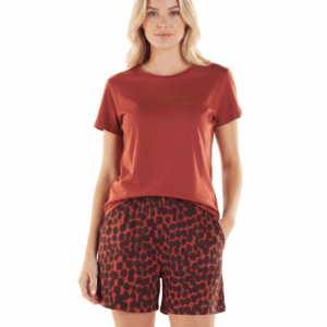 Pijama Pzama Meia Manga Abertura Frontal Com Shorts Em Malha Sublimada Feminino Tigresa
