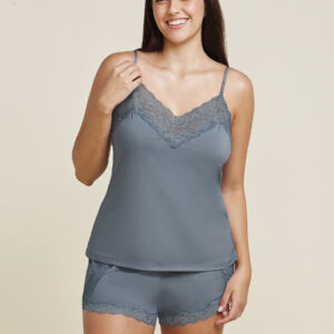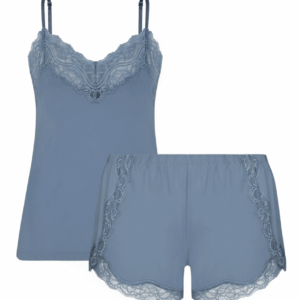 Short Doll Hope Em Microfibra Com Renda Azul Grafite Coleção Love Stories