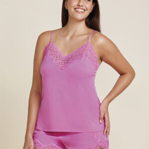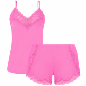 Short Doll Hope Alças Finas Em Viscose E Cetim Rosa Damasco Coleção Fiore