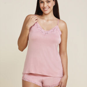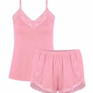 Short Doll Hope Alças Finas Em Viscose E Renda Rosa Algodão Coleção Happy