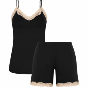 Short Doll Hope Alças Finas Em Viscose E Renda Preto Coleção Moon