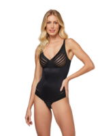 Body Liebe Modelador Em Microfibra Com Tule Stripes Preto