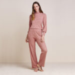 Pijama Hope Longo Em Viscose Felpuda Canelada Laranja Nebula Coleção Adhara