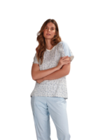 Pijama Pzama Meia Manga Com Capri Algodão Estampado Poá E Floral Azul