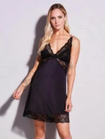 Camisola Hope Em Renda E Microfibra Preto Coleção Cristal