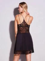 Robe Liebe De Cetim Com Renda Loungewear Preto
