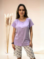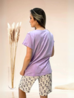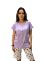 Pijama Pzama Meia Manga Com Bermuda E Botões Algodão Lavanda