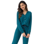 Pijama Longo Lua Encantada Americano Em Algodão Verde Esmeralda Liso