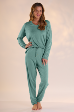Pijama Pzama Manga Longa Com Calça Em Viscolycra Feminino Verde Palm