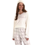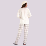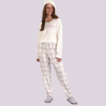 Pijama Pzama Manga Longa Com Calça Cinza Xadrez E Off White