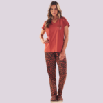 Pijama Pzama Meia Manga Com Calça Em Meia Malha Feminino Camurça
