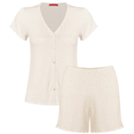 Short Doll Hope Em Linho Canelado Com Botões Cru Coleção Lina
