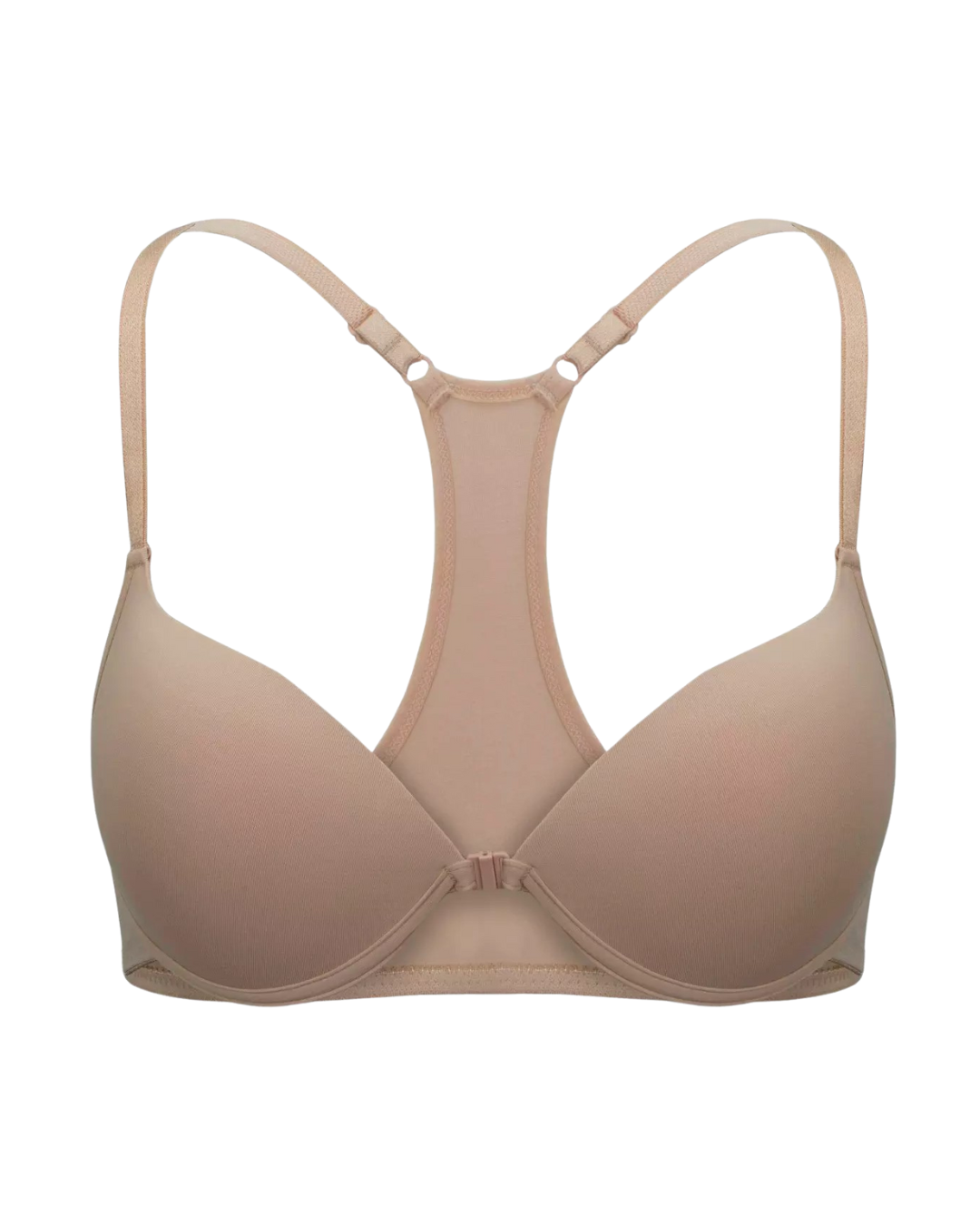 - Fecho frontal e costas com design nadador que auxilia na postura.