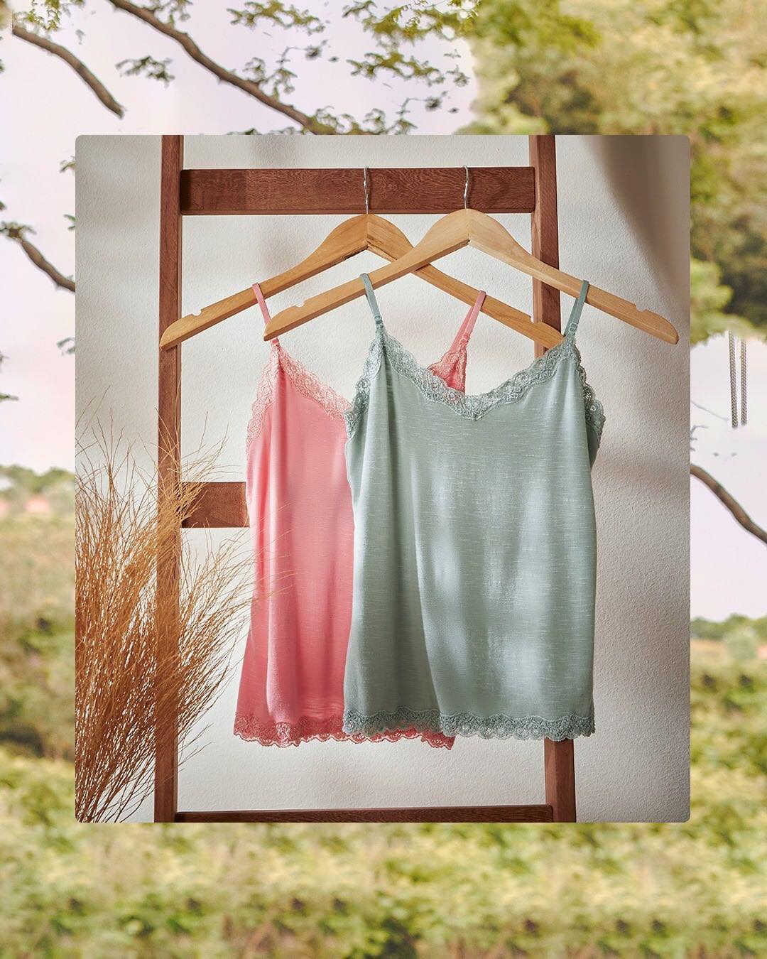 Camiseta Hope Alças Finas Em Modal E Detalhe Em Renda Verde Chá Coleção Green