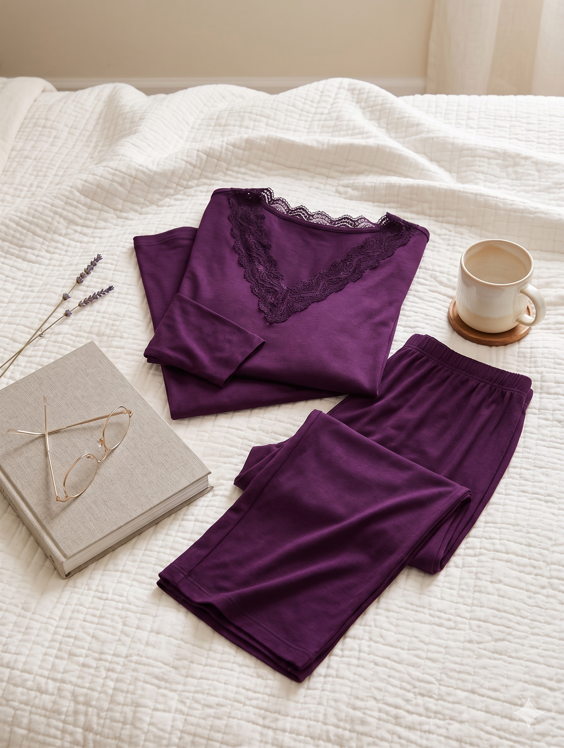 Pijama Bonjour Manga Longa E Calça Em Viscose Com Renda Roxo Haze Coleção Alma Serena